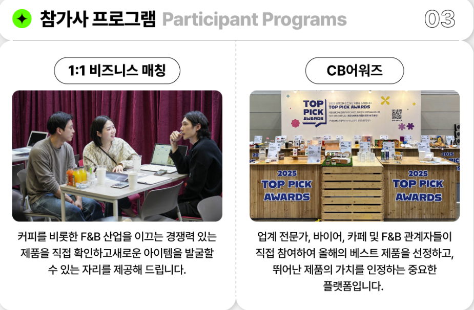 - 부스 미리 체크: 디저트, 장비, 커피, 프랜차이즈 등 관심 분야별 부스 위치를 사전 확인하면 더 효율적인 동선으로 관람할 수 있습니다.