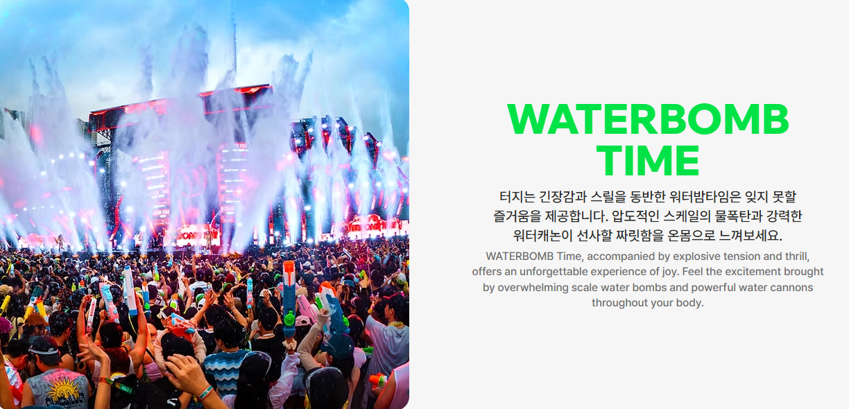 - 예매처: 워터밤 공식 홈페이지, 인터파크, 멜론티켓, KKday 등
