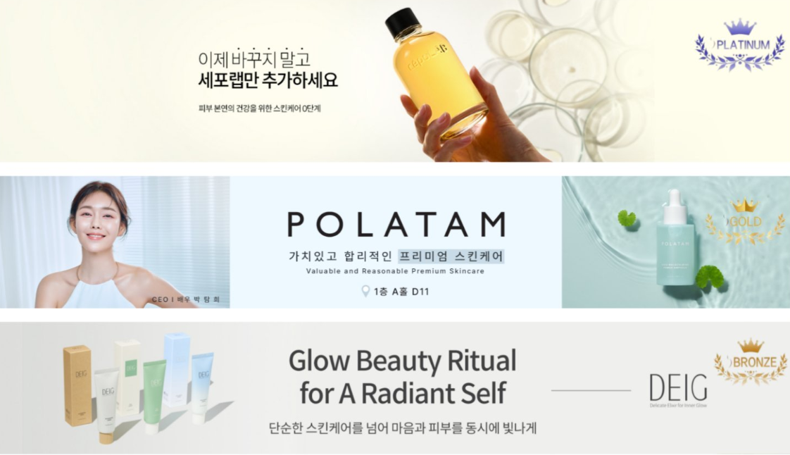 올해도 정말 다양한 업체들이 참가합니다. 예를 들어 전자빔 기반 저자극 하이드로겔을 개발하는 소프트머티리얼즈, 국제 인증을 다수 획득한 스킨케어 OEM 업체 Winnova, 그리고 페이스/바디 겸용 홈케어 미용기기 브랜드 MDPLANNER까지!